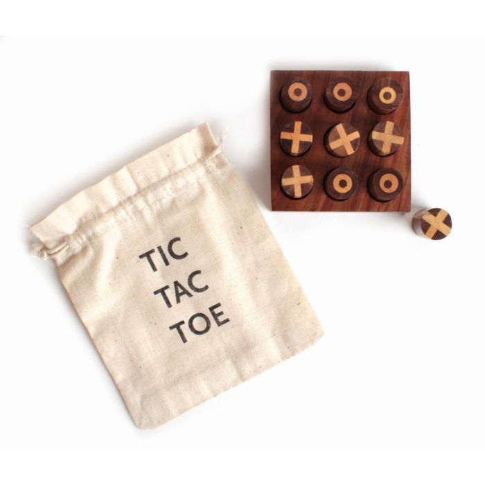 Sheesham-Holz, Papri-Holz, mit 10 Spielsteinen, im Baumwollbeutel, 7 x 7 cm