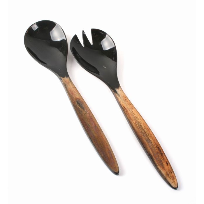 Egal ob Sommer oder Winter, wer kann zu einem selbstgemachten Salat schon Nein sagen? Egal ob Kartoffel-, Nudel-, Reis- oder Obstsalat, mit diesem Besteck wird die Wunschportion sicher von der Schüssel auf den Teller geführt. Die Gestaltung des Bestecks kommt von Kunsthandwerker*innen aus Indien. So bleibt die Wertschöpfung zu 100% im Ursprungsland. Horn ist ein Naturmaterial, das jedes Salatbesteck zu einem handgefertigten Unikat macht. Das harte Material wird mit mehreren Werkzeugen, wie Messern und einer Schleifmaschine, bearbeitet, bis es die gewünschte Form erhält.