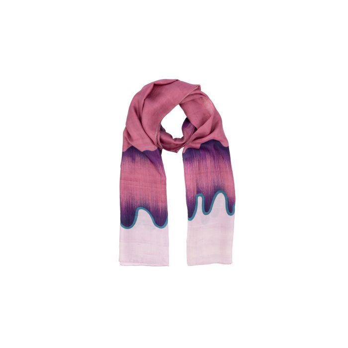 Erlebe einen Hauch von Luxus mit unserem handgewebten Seidenschal. Aus 100 % hochwertiger Seide gefertigt, begeistert jedes Stück als echtes Unikat. Die feine, weiche Seide schmeichelt Deiner Haut und schenkt Dir ein exklusives Tragegefühl, das Du sofort spüren wirst. Das Design vereint zartes Rosa an den Enden mit lebendigem Lila und Türkis im Mittelteil. Diese einzigartige Farbkombination lässt sich wunderbar vielseitig stylen und ergänzt viele Deiner Lieblingsoutfits.