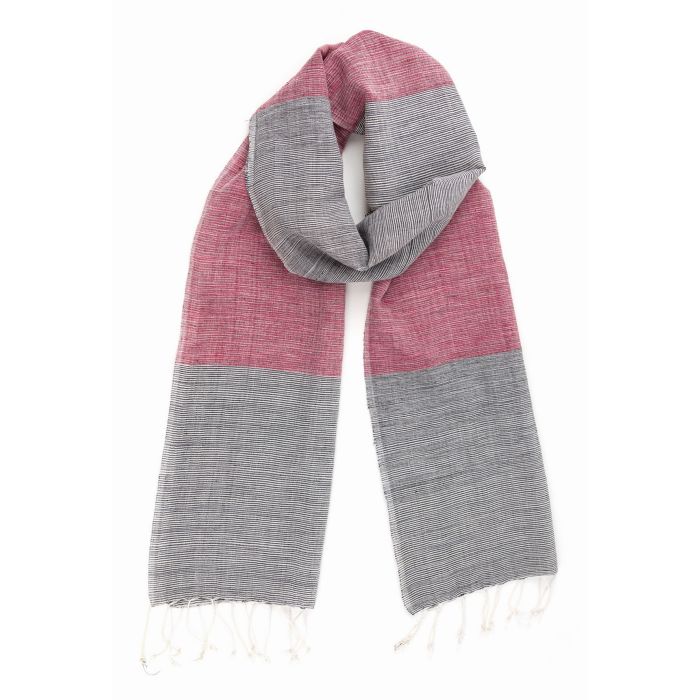 Du möchtest ein Accessoire, das nicht nur schön aussieht, sondern sich auch wunderbar anfühlt? Dieser handgewebte Schal aus 100 % Baumwolle schenkt Dir jeden Tag ein Stück Geborgenheit. Die fein abgestimmten Farben Grau und Weinrot machen ihn zum ausdrucksstarken Lieblingsstück für viele Looks. Seine Größe von 35 x 180 cm sorgt für viele Tragemöglichkeiten: locker um die Schultern gelegt oder klassisch gewickelt. Besonders weich auf der Haut, begleitet Dich dieser Schal sanft durch jede Jahreszeit und überzeugt mit angenehmem Tragekomfort.