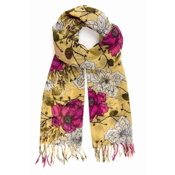 Mit diesem wunderschönen Schal trägst Du nicht nur ein Stil-Statement, sondern auch ein Stück indischer Handwerkskunst nah bei Dir. Der Schal vereint zarte Farben in Gelb, Pink und Weiß und bringt so sanfte Leichtigkeit in Deinen Alltag. Seine ausdrucksstarken Muster führen zu einem einzigartigen Design, das jedes Outfit veredelt. Gefertigt ist der Schal aus 100 % hochwertiger Wolle, die sorgfältig von Hand gewebt und bedruckt wurde. Die großzügigen Maße von 50 x 180 cm schenken Dir vielseitige Tragemöglichkeiten, ob locker um die Schultern oder klassisch als Schal.