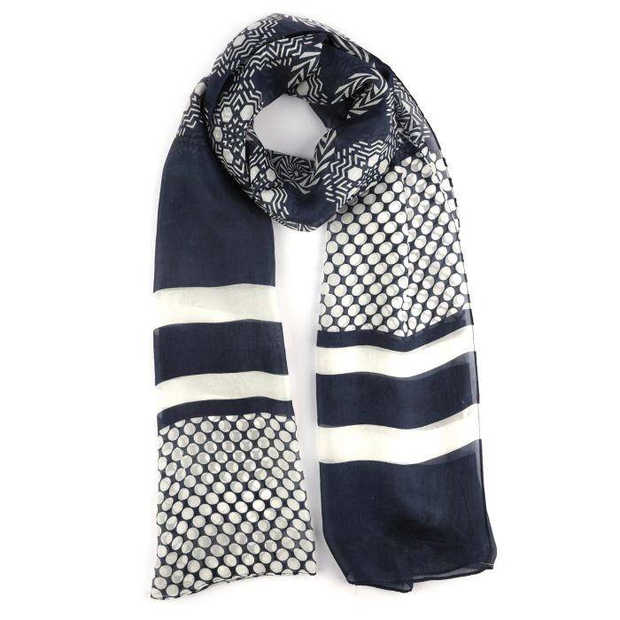 Erlebe mit diesem besonderen Seidenschal aus Indien ein unvergleichliches Gefühl von Leichtigkeit und edlem Stil. Die sorgfältig ausgewählte Seide in Blau und Weiß bringt einen frischen Akzent in Deine Garderobe und lässt sich vielseitig kombinieren. Durch das Maß von 50 x 180 cm schmiegt sich der Schal sanft an Deinen Hals und sorgt für ein angenehmes Tragegefühl, ob an kühlen oder sonnigen Tagen. Aus reiner Seide gefertigt, begeistert das Material durch seine hautfreundlichen und temperaturausgleichenden Eigenschaften.