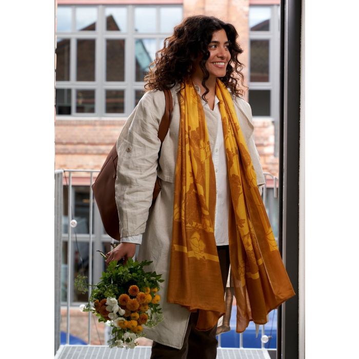Das Design in Gelb und Braun ist nicht nur ein Blickfang, sondern bringt auch Wärme und Lebendigkeit in Deinen Alltag, egal, ob als Halstuch oder elegant über die Schultern gelegt. Dank großzügiger Maße von 70 x 200 cm lässt sich der Schal kreativ zu jedem Outfit tragen und verleiht Deinem Stil immer wieder neue Facetten.