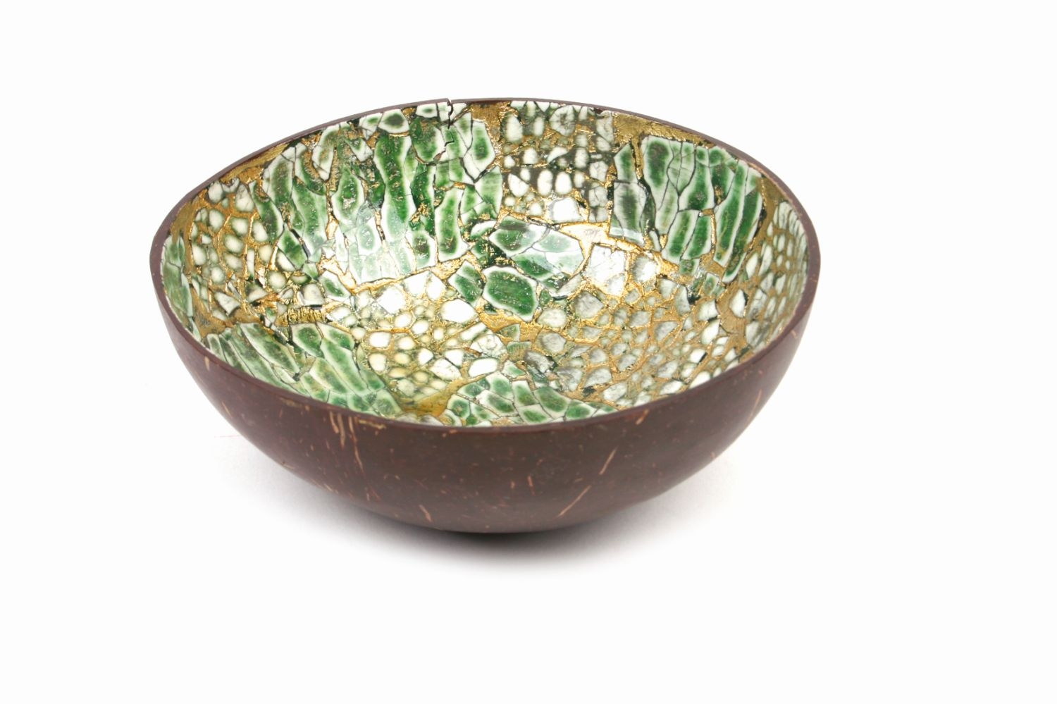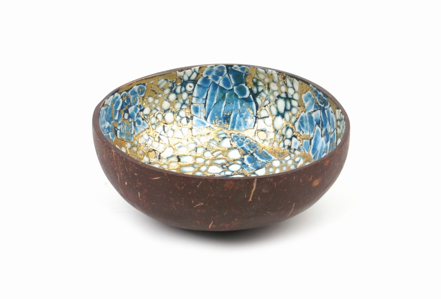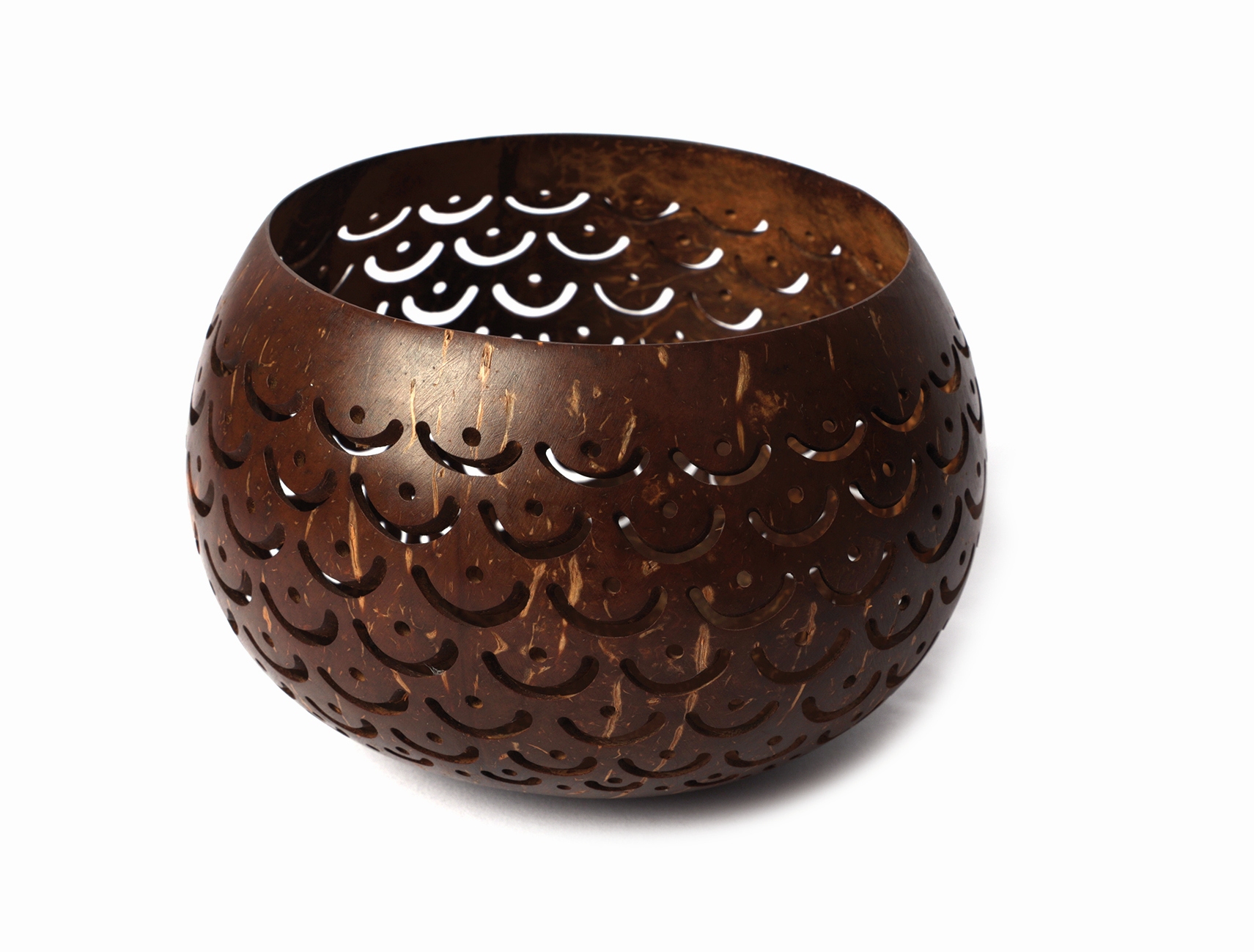 Schenkt Freude und stimmungsvolles Licht: Diese zauberhafte Schale aus einer handgeschnitzten und von Innen goldverzierten Kokosnuss, bietet Platz für ein Teelicht und sorgt für Wohlfühlatmosphäre. Während des Herstellungsprozesses wird vollständig auf tierische Produkte verzichtet — perfekt, wenn man Wert auf ein naturfreundliches Zuhause legt. Durch die filigranen Muster entfaltet sich das Kerzenlicht wunderschön und taucht die gesamte Umgebung in ein gemütliches Licht. Jede Schale ist ein Naturprodukt, die in aufwändiger Handarbeit durch Kunsthandwerker*innen von Mitra Bali in Indonesien unter fairen Bedingungen verarbeitet wird und einzigartig ist.