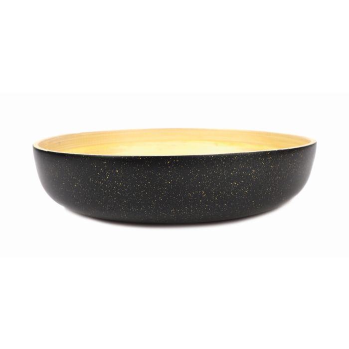 Schön, einfach und natürlich. Diese flache Servierschale ist aus haltbarem Bambus gefertigt, einem natürlichen Material mit schöner Optik und warmer Ausstrahlung. Sie wird aus nachwachsenden Rohstoffen hergestellt und hochwertig matt in der Farbe Schwarz mit goldenen Sprenkeln lackiert. Durch die natürliche Optik von Bambus bzw. Holz, eignen sich diese Schalen zur Herstellung eines besonders wohnlichen, warmen Raumklimas, passend zum Landhaus Stil, aber auch Boho bzw. Vintage. Einfach hyggelig. Die flache Schale eignet sich besonders in der Küche für Salat, Dips oder Oliven sowie für Chips und Süßigkeiten auf dem Esstisch. Durch ihre feine Lackierung ist die Schale ein Eye Catcher in jedem Regal und auf jedem Sideboard. Unsere dekorative Schale kann aber nicht nur zum Servieren von Speisen verwendet, sondern auch als Tafelaufsatz für Ihren Küchentisch oder als Aufbewahrungsschale für Schlüssel, Schmuck oder andere kleine Gegenstände verwendet werden! Hergestellt unter fairen Bedingungen von unserem Handelspartner Craft Link in Vietnam.