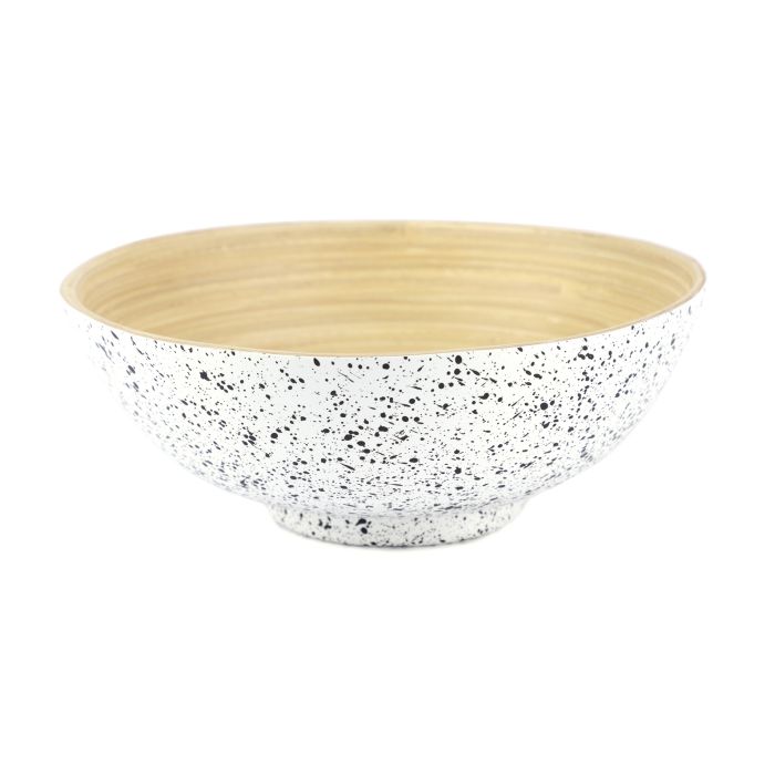 Schön, einfach und natürlich. Diese flache Servierschale ist aus haltbarem Bambus gefertigt, einem natürlichen Material mit schöner Optik und warmer Ausstrahlung. Sie wird aus nachwachsenden Rohstoffen hergestellt und hochwertig matt in der Farbe Weiß mit schwarzen Sprenkeln lackiert. Durch die natürliche Optik von Bambus bzw. Holz, eignen sich diese Schalen zur Herstellung eines besonders wohnlichen, warmen Raumklimas, passend zum Landhaus Stil, aber auch Boho bzw. Vintage. Einfach hyggelig. Die flache Schale eignet sich besonders in der Küche für Salat, Dips oder Oliven sowie für Chips und Süßigkeiten auf dem Esstisch. Durch ihre feine Lackierung ist die Schale ein Eye Catcher in jedem Regal und auf jedem Sideboard. Unsere dekorative Schale kann aber nicht nur zum Servieren von Speisen verwendet, sondern auch als Tafelaufsatz für Ihren Küchentisch oder als Aufbewahrungsschale für Schlüssel, Schmuck oder andere kleine Gegenstände verwendet werden! Hergestellt unter fairen Bedingungen von unserem Handelspartner Craft Link in Vietnam.