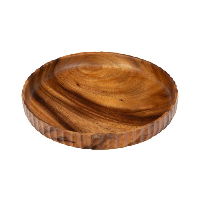 Diese wunderschöne Schale, gefertigt aus hochwertigem Regenbaumholz, ist ein handverziertes Kunstwerk mit einem Durchmesser von 28 cm und einer Höhe von 5 cm. Der Rand der Schale ist kunstvoll geriffelt, was dem Design eine besondere Raffinesse verleiht. Jede Schale wird von den Kunsthandwerker*innen der Organisation Mitra Bali in Indonesien unter fairen Bedingungen von Hand verziert. Mit großer Sorgfalt und Liebe zum Detail entstehen so einzigartige Stücke, die die reiche Kultur und Handwerkstradition der Region widerspiegeln. Perfekt geeignet zum Servieren von Speisen, als Obstschaleoder einfach als stilvolles Dekorationsstück. Das Regenbaumholz verleiht der Schale eine warme, natürliche Ausstrahlung.