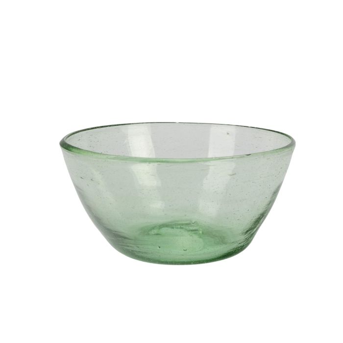 Diese handgeblasene Schale aus recyceltem Glas bringt frisches Grün in die Küche! Mit 9,5 cm Höhe und einem Durchmesser von 21 cm eignet sie sich perfekt für Snacks, Salate oder Desserts. Hergestellt wird die Schale von der Khaled-Gruppe in Kairo, die unter der ägyptischen Fairhandelsorganisation Yadawee arbeitet und traditionellen Glasbläsertechniken folgt. Jede Schale weist die charakteristische Bläschenstruktur auf und ist ein nachhaltiges Einzelstück für umweltbewusste Haushalte.