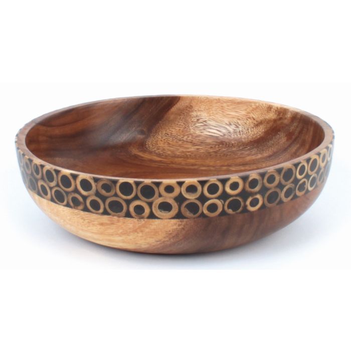The Art of Wood: Diese wunderschöne Schale aus Regenbaumholz ist mit aufwändig eingearbeiteten Bambusscheiben am Rand verziert und der Hingucker auf jedem Tisch. Die unvergleichliche Farbgebung des besonderen Materials macht die Schale zu etwas ganz Besonderem. Die Qualität dieser Holzart gilt als besonders hochwertig. Da die Bäume über nur sehr wenige Äste verfügen, ist das Bild der Maserung besonders fein, was eine bezaubernde Optik ergibt. Durch die akkurate Handarbeit und den warmen Farbton strahlt die Schale Harmonie aus und eignet sich hervorragend als Deko-Element für jeden Einrichtungsstil. Das hier verwendete Holz kommt aus sicheren, nachvollziehbaren Quellen und wird von Kunsthandwerker*innen in Indonesien von Mitra Bali unter fairen Bedingungen verarbeitet.