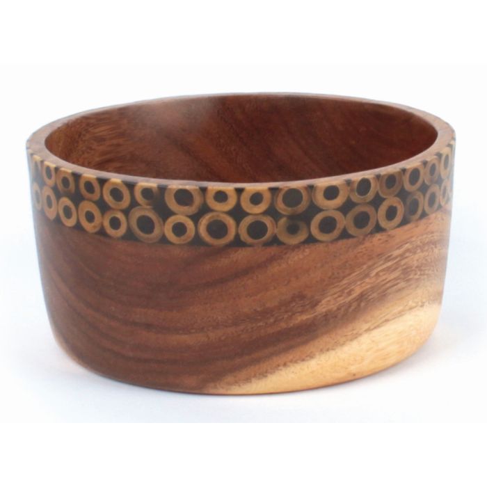 Zaubert Flair: Diese wunderschöne Schale aus Regenbaumholz ist mit eingearbeiteten Bambusscheiben am Rand verziert und der Hingucker auf jedem Tisch. Die unvergleichliche Farbgebung des besonderen Holzes macht die Schale zu etwas ganz Besonderem. Die Qualität des Materials gilt als besonders hochwertig. Da die Bäume über nur sehr wenige Äste verfügen, ist das Bild der Maserung besonders fein, was eine bezaubernde Optik ergibt. Durch die akkurate Handarbeit und den warmen Farbton strahlt die Schale Harmonie aus und eignet sich hervorragend als Deko-Element für jeden Einrichtungsstil. Das hier verwendete Regenbaumholz kommt aus sicheren, nachvollziehbaren Quellen und wird von Kunsthandwerker*innen in Indonesien von Mitra Bali unter fairen Bedingungen verarbeitet. In unterschiedlichen Größen erhältlich.