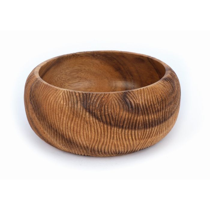 Natural living: Diese Schale ist ein beeindruckendes und vielseitiges, funktionales Dekorationsobjekt. Sie ist minimalistisch und elegant und passt perfekt zu einem rustikalen oder modernen Interieur. Die runde, handgedrehte Form ist aus Regenbaumholz gefertigt und mit einer wellenförmigen Oberfläche verziert. Das Holz stammt aus sicheren, nachvollziehbaren Quellen und wird von Kunsthandwerker*innen unseres Handelspartners Mitra Bali in Indonesien unter fairen Bedingungen verarbeitet. Diese vielseitige Schale wird in jedem Raum des Hauses einen raffinierten Akzent setzen, denn Regenbaumholz hat eine unvergleichliche Optik. In drei verschiedenen Größen erhältlich.