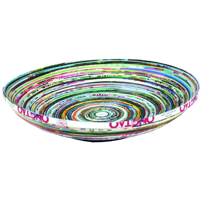 Upcycling meint aus alten ausgedienten Materialien Neues herzustellen. In Zusammenarbeit mit unserem Handelspartner Mai Vietnamese Handicrafts stellt eine Produzent*innengruppe in der Provinz Tuy Hoa originelle Schalen, Dosen und Dekoelement aus ausgedientem Zeitungspapier her. Dafür werden die geschnittenen Streifen aus Zeitungspapier mit Klebstoff behandelt, in der Sonne getrocknet, anschließend wieder leicht angefeuchtet, in Form gebracht und kunstvoll arrangiert. So entstehen farbenfrohe Wohnaccessoires in Handarbeit. Jedes Stück ist ein Unikat! Papierdosen und Schalen sind Dekorationsartikel und sollten nur zur Aufbewahrung trockener Gegenstände verwendet werden. Zum Reinigen mit einem trockenen oder leicht angefeuchteten Tuch abwischen.