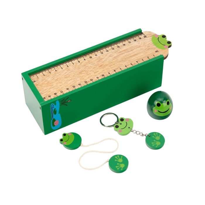 Das Schul-Starter-Set „Frosch“ bringt Farbe und Funktionalität ins Klassenzimmer. Mit Lineal, Schlüsselanhänger, Lesezeichen und Anspitzer ist es der perfekte Begleiter für den Schulstart. Gefertigt aus nachhaltigem Albesia- und Alstonia-Holz und liebevoll in Grüntönen gestaltet, überzeugt es durch kindgerechtes Design und faire Produktionsbedingungen. Hergestellt von Gospel House in Sri Lanka – für einen nachhaltigen Start in die Schule.
