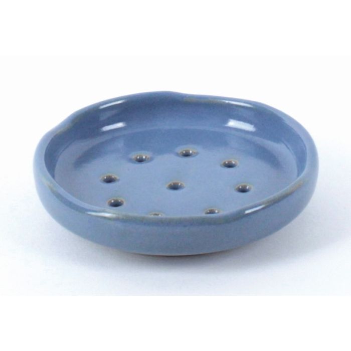 Bei unserer Vielzahl an Seifen findet Ihr bestimmt Euer neues Lieblingsstück. In dieser handgefertigten kreisrunden Seifenschale in graublau ist es gut aufgehoben. Durch die Löcher in der Schale kann überflüssiges Wasser ablaufen. So trocknet die Seife schneller und löst sich nicht auf.