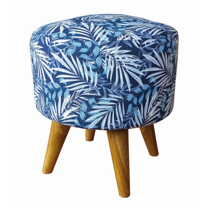 Der moderne Sitzhocker aus Teakholz und 100 % Baumwolle bietet nicht nur Funktionalität, sondern auch Stil. Handgefertigt von indonesischen Kunsthandwerker*innen ist jedes Stück ein Unikat. Der stabile Teakholzrahmen sorgt für sicheren Stand, während der weiche, blaue Bezug mit Blätter-Motiv für eine gemütliche Atmosphäre sorgt.