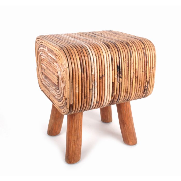 Mach es Dir gemütlich mit unserem einzigartigen Sitzhocker aus Teak- und Rattan-Holz. Dieses formschöne Möbelstück verbindet rustikale Eleganz mit hoher Funktionalität. Jede*r Kunsthandwerker*in hat in liebevoller Detailarbeit das beste Teak-Holz aus den indonesischen Wäldern mit robustem Rattan kombiniert. Dadurch entsteht ein Sitzmöbel, das nicht nur langlebig ist, sondern auch durch seine natürliche Ausstrahlung punktet.