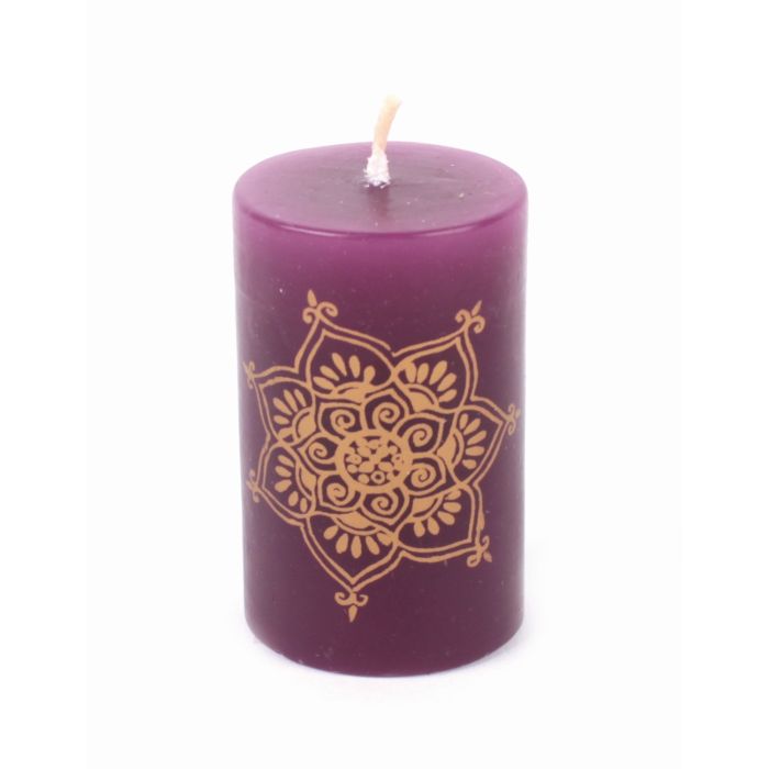 Erlebe die Magie der Stumpenkerze „Mandala“ in zartem Lila mit edlen Goldakzenten. Das harmonische Mandala-Muster wurde von talentierten Kunsthandwerker*innen in Indien sorgfältig aufgetragen und schenkt jeder Kerze eine ganz eigene Persönlichkeit. Spüre, wie das faszinierende Design Deinem Zuhause einen Hauch von Eleganz, Geborgenheit und Inspiration verleiht.