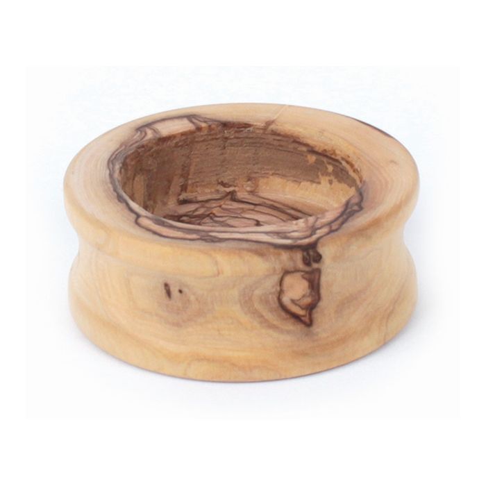 Der runde Teelichthalter ist aus Olivenholz gearbeitet. Die Kunsthandwerker*innen aus Palästina haben ihn in liebevoller Handarbeit für Euch geschnitzt. Das Olivenholz hat eine wunderschöne natürliche Maserung.