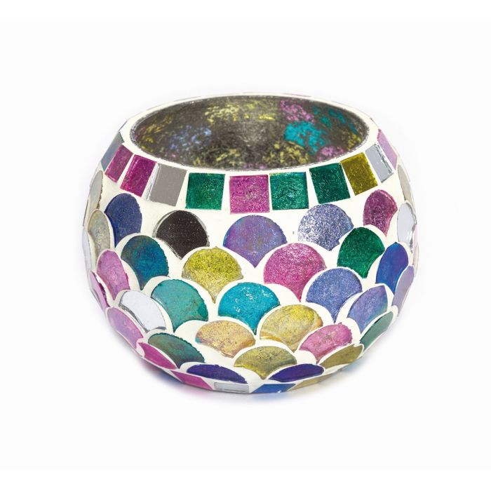 Mosaikglas, weiß/bunt, H 7 cm, Ø 9 cm