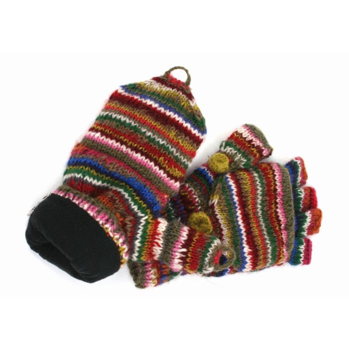 Die Vario-Handschuhe aus Schurwolle in Größe L bestehen aus 100 % hochwertiger Schurwolle und sind im Inneren mit weichem Fleece gefüttert. Das besondere Streifendesign in leuchtenden, harmonisch aufeinander abgestimmten Farben macht jedes Paar zu einem echten Blickfang. Die Verarbeitung erfolgt sorgfältig von Hand in Nepal, wodurch jedes Paar seinen einzigartigen Charakter erhält. Du spürst sofort die gemütliche Wärme beim Anziehen und genießt die weiche Haptik, die Deine Hände zuverlässig vor Kälte schützt.