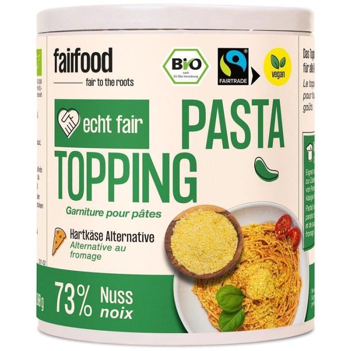 Das Topping stammt von fairfood Freiburg, die dafür sorgen, dass die Produktionsbedingungen nachhaltig und gerecht sind. Du kannst Dir sicher sein, dass mit jedem Kauf dieses veganen Toppings nicht nur Dein Gaumen verwöhnt wird, sondern Du auch den Fairen Handel unterstützt. Genieße den leckeren Geschmack und setze ein Zeichen für eine faire und umweltbewusste Lebensweise, die alle wertschätzt!