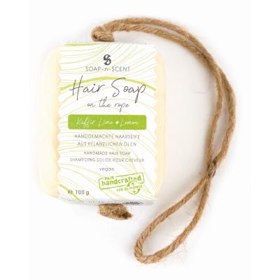 handgemachte Haarseife, pflanzliche Öle, mit Juteaufhängung, Sorte: Kaffir Lime & Lemon, für geschmeidiges/glänzendes Haar, 100 g