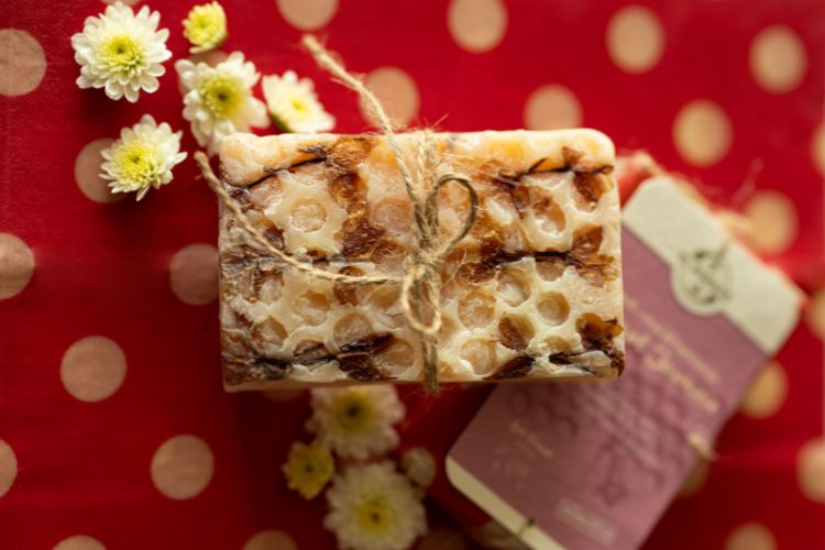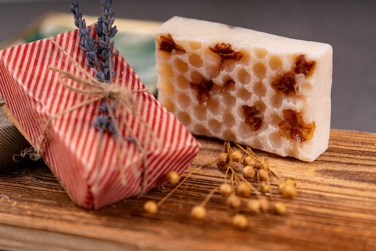 handgemachte feste Gesichtsseife, pflanzliche Öle, mit Ziegenmilch, Sorte: Honig, 80 g