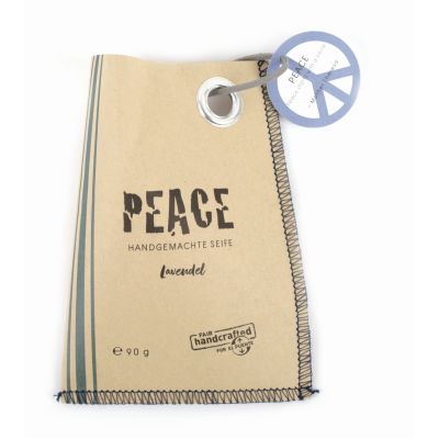 handgemachte Stückseife, pflanzliche Öle, mit Peace-Symbol, Sorte: Lavendel, 90 g