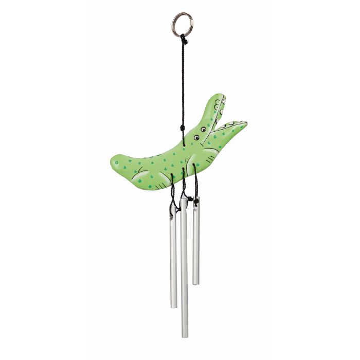 Das Windspiel "Krokodil" begeistert durch kunstvolle Handarbeit aus Albesia-Holz und Aluminium. Es wird mit großer Sorgfalt in Indonesien handbemalt und überrascht mit seinem besonderen Krokodilmotiv. Mit den Maßen 9 x 17,5 cm verschönert es Deinen Garten, Balkon oder das Fenster, wo das Windspiel sanfte Melodien entstehen lässt und Freude in Deinen Alltag bringt.