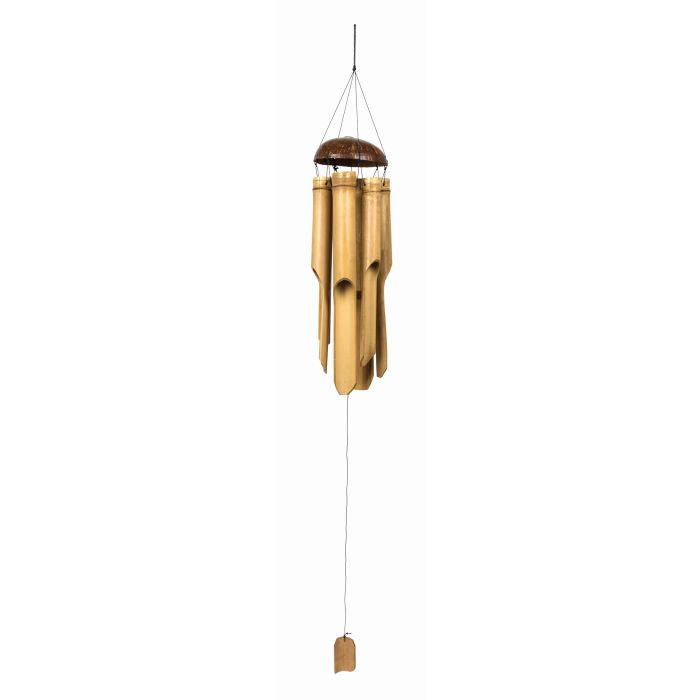 Die harmonischen Töne entstehen, wenn sanfter Wind die Bambusteile bewegt. Jeder Klang erinnert an ruhige Momente, ein Gefühl von Geborgenheit und Entspannung breitet sich aus. Das Windspiel ist etwa 45 cm lang und hat einen Durchmesser von circa 13 cm, damit fügt es sich dezent in viele Einrichtungsstile ein und bleibt dennoch ein besonderer Blickfang.