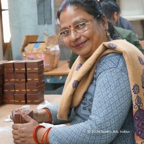Mango-Holz, mit aufwändiger Holzschnitzerei, natur, 16 x 16 x 6,5 cm