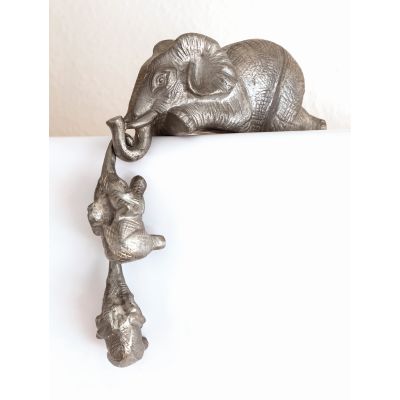 Eisen, großer liegender Elefant und 2 kleine hängende Elefanten, silberfarben, ca. 18 x 8 x 10 und 10 x 4 x 5 cm