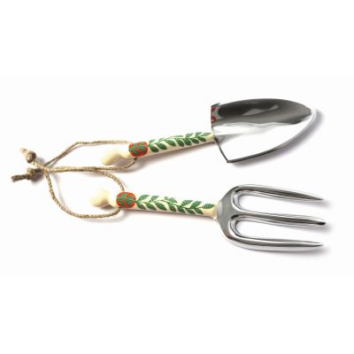 Blech, mit buntem Blumendekor, Griff aus Mango-Holz, 34 x 21 x 22,5 cm