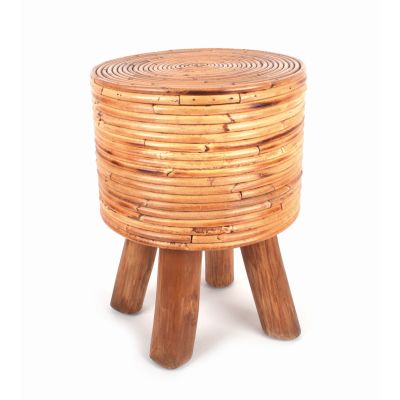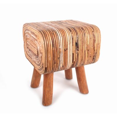 Teak-Holz, Rattan-Holz, vierbeinig, natur, 30 x 38 x 45 cm