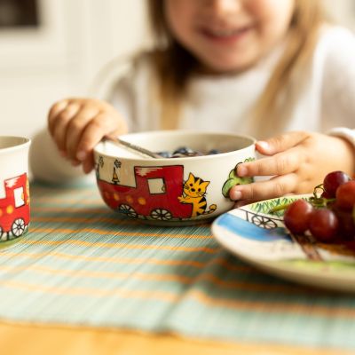 Unser Keramik Kindergeschirr wird von unserem Handelspartner Sang Arun in Thailand liebevoll handbemalt. Die Region im thailändischen Inland ist für hochwertige Kaolin-Tonerde und daraus gefertigtes Kunsthandwerk bekannt. Die Geschirrsets für Kinder bringen faire Freude auf den Esstisch.