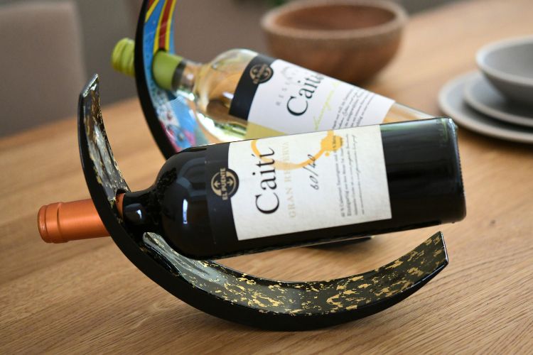 für 3 Flaschen, recycelte Fahrradkette, kupferfarben, 30 x 10,5 x 30 cm