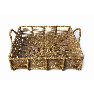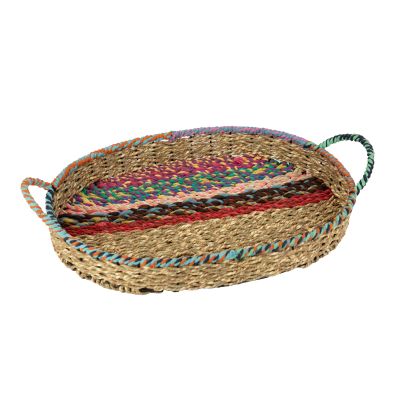 Eisen, Seegras, recycelte Sari-Stoffe, oval, bunt/natur, 47 x 36 x 6 cm