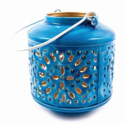 recyceltes Eisen, Glasperlen, goldfarben/blau/grün, 32 x 54 cm