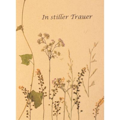 handgeschöpftes Papier, mit Blüten-Applikationen, Doppelkarte mit Umschlag, natur, 12 x 17 cm