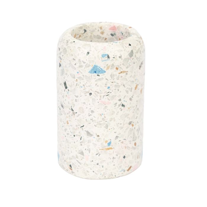 Peppe Dein Badezimmer mit unserem praktischen Zahnbürstenhalter mit den Maßen 5,5 x 5 ,5 x 9 cm aus Terrazzo auf, liebevoll gefertigt von den talentierten Kunsthandwerker*innen von Usha Exim in Indien. Jedes Stück ist ein Unikat und zeichnet sich durch seine Einzigartigkeit aus – handgefertigt unter fairen Bedingungen. Die außergewöhnlich schöne Maserung durch die Sprenkel in Rosé, Blau, Grau und Rot, verleihen dieser cremefarbenen Kreation das gewisse Etwas – und Deinem Waschbereich eine stilvolle Note.